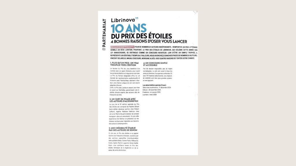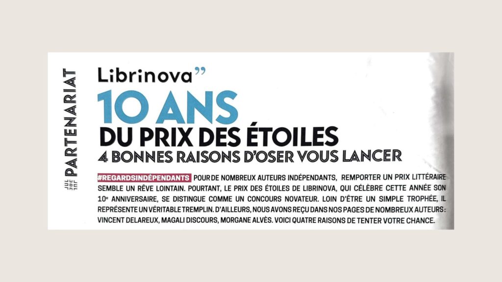 Ce PRIX des ETOILES lancé par Librinova qui fête ses 10 ans se distingue comme un concours novateur auprès de ses nombreux auteurs indépendants.